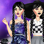 W Wednesday Dark Academia masz do wyboru mnóstwo oryginalnych i stylowych ciuchów, dodatków i opcji makijażu. Zacznij od makijażu i stwórz look idealny do szkoły albo na bal. Poeksperymentuj z ciemną szminką i cieniami do powiek, a z odrobiną wyobraźni zrobisz coś totalnie swojego. Potem ubierz ją na luźny dzień w szkole, a następnie sprawdź, jaki imprezowy outfit potrafisz dla niej ułożyć. Ułóż jej fryzurę i dobierz pasujące dodatki, żeby cały wygląd był dopięty na ostatni guzik.